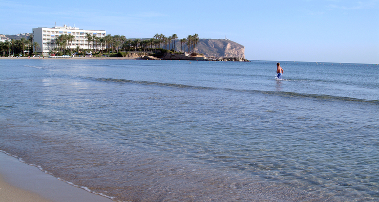 Playa urbana de arena gruesa y aguas poco profundas ubicada en el centro de la Bahía de Xàbia, en el núcleo urbano al que le da nombre.