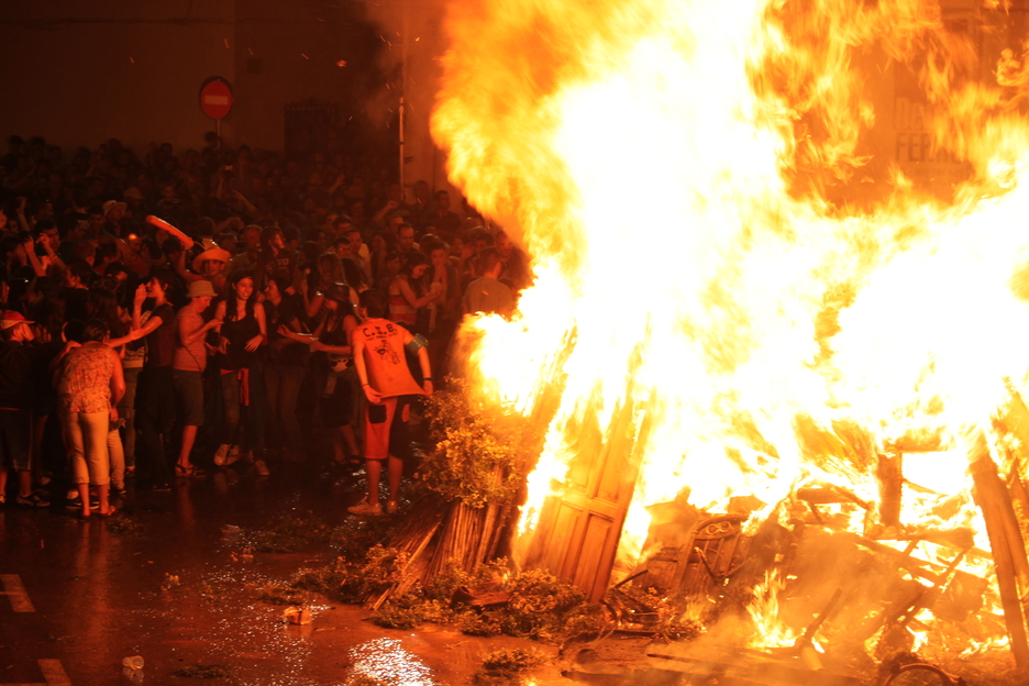La noche del 23 de Junio empieza con la «cremà dels focs» en los puntos donde estaban las puertas de las antiguas murallas. Se trata de unas hogueras que prepara la peña L'Escaldà y sobre las que la gente salta portando unas guirnaldas en la cabeza a modo de corona. Todas las peñas que forman las fiestas de Sant Joan participan en ellas ataviadas con sus blusas de colores y emblemas distintivos. Posteriormente, se reúnen en la cremà de la foguera de «trastos vells», que organiza la peña El Gerrot. Allí, al calor de la hoguera, entonan una canción típica de esta noche de San Juan:....“Como una flor que ebria de besos esclata, Jávea por San Juan en fiestas se desata…”.