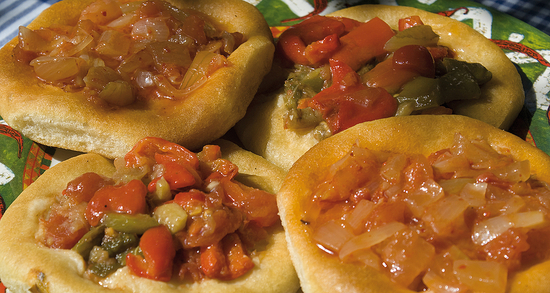 Se meten en el horno hasta que la pasta esté hecha y doradita. La mezcla típica es de Esgarrat o de cebolla frita con tomate pero también pueden hacerse sólo con aceite y salazón o embutido.
