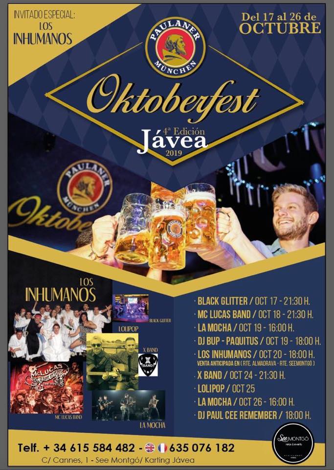 La Oktoberfest contará con las actuaciones de Black Glitter, La Mocha, Lolipop, Mc Lucas Band, X Band, Dj Paul Cee Remember, Dj BUP-Paquitus y el artista invitado, el grupo Los Inhumanos, que ofrecerán su concierto el domingo 20 de octubre, a partir de las 18 horas, con venta de entrada anticipada.