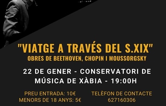 Recital de piano de Vicent Sendra Vilanova que harà un recorrido por el repertorio para piano del siglo XIX, desde Beethoven hasta Moussorgsky, mostrando como cambió el lenguaje musical y también el uso del instrumento.