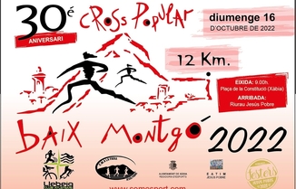 El Club Atletisme Llebeig Xàbia i el C. M. A. La Faixa Jesús Pobre organizan el Cross Popular Baix Montgó que tendrá lugar el domingo 16 de Octubre. La salida se dará a las 09:00h en la plaza de la Constitución (Jávea). En esta 30 edición, el recorrido cuenta con un total de 12km, siendo Jesús Pobre el lugar de meta.