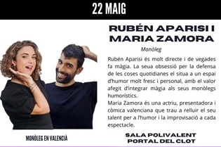 Rubén Aparisi es muy directo y a veces hace magia. Su obsesión por la defensa de las cosas cotidianas lo sitúa en un espacio de humor muy fresco y personal. Maria Zamora es una actriz, presentadora y cómica valenciana que saca a relucir su talento para el humor y la improvisación a cada espectáculo.