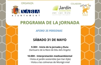 Ruta apiculturística educativa en las instalaciones de Miel Montgó, situadas en el Parque Natural del Montgó. La ruta guiada, totalmente gratuita, será de 9:30 a 11:00 horas y se precisa de inscripción previa, ya que las plazas son limitadas. La inscripción se puede realizar contactando al 616159323 o a través del formulario: https://docs.google.com/forms/d/e/1FAIpQLSdl_2bhuBiI_gJmiRaOQwam9QkfsUL87tol5MUF3wKtITrXPQ/viewform?pli=1
